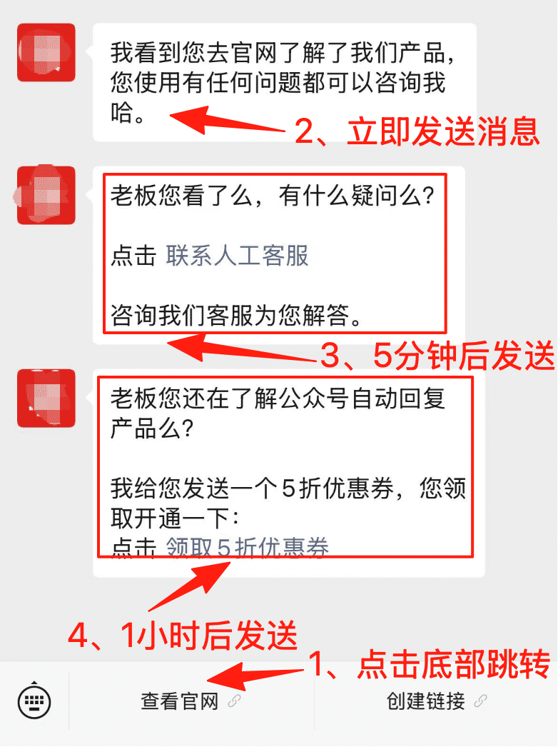 我们不光可以在点击链接跳转网页/小程序的过程中立即发送消息,还可以支持定时推送一条或多条消息。我们可以看到,就算分手点击的是链接,依然在1小时内给对方推送了3条消息。