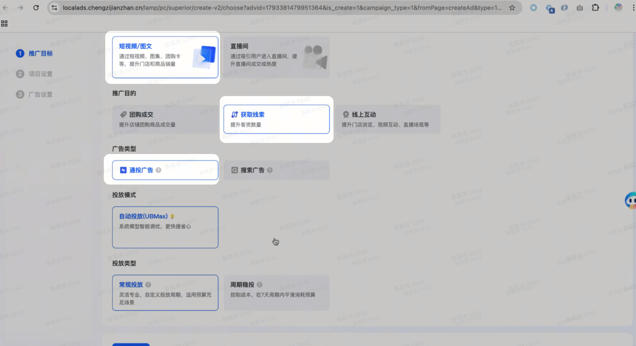 本地推投放选择:短视频-获取线索-通投广告