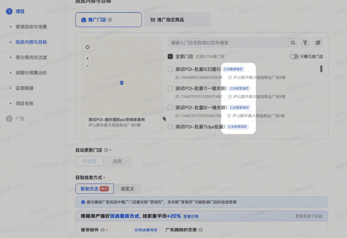 - 标的关联要求:投放门店或商品时,需优先选择已关联目标营销页的标的进行推广。