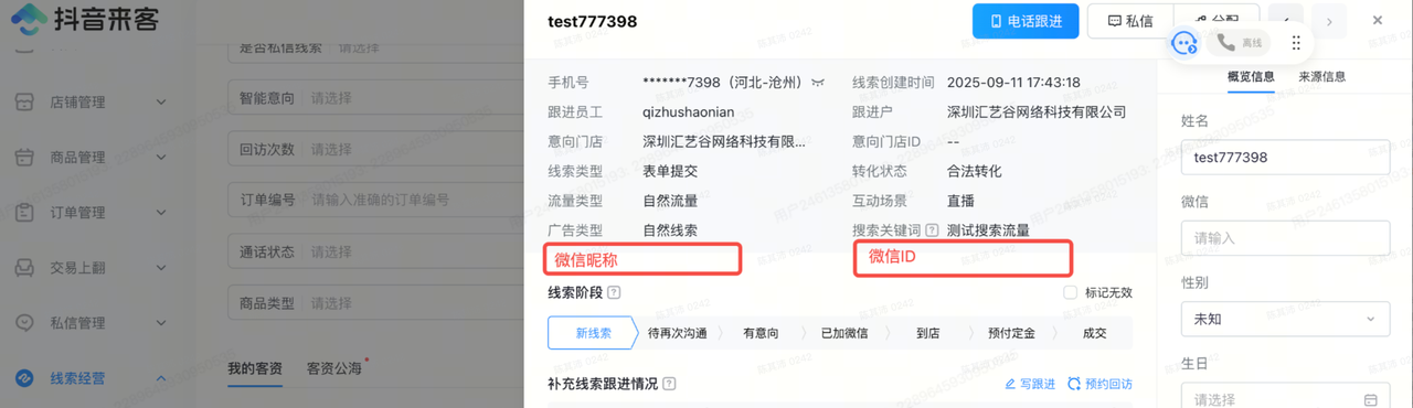 平台查询线索数据:抖音来客-客资中心(线索管理crm)